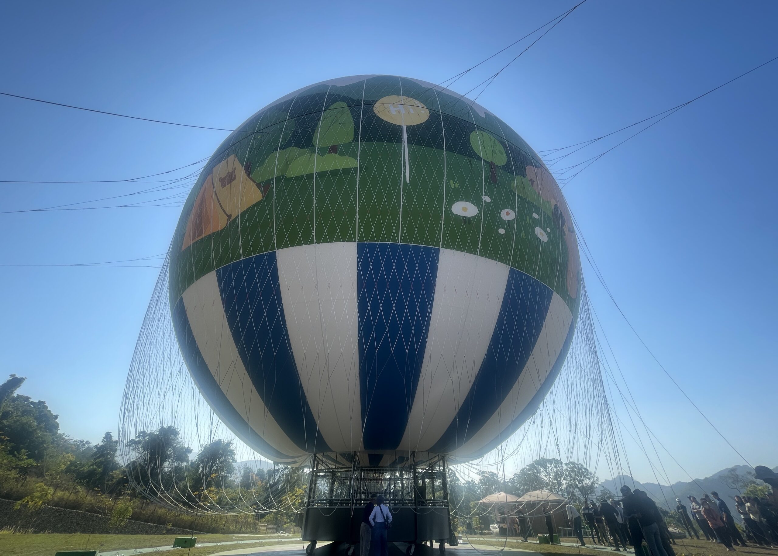 「好壯觀且卡哇伊的氦氣球升空了!」南投縣斥資五點二億元三年努力打造的九九峰氦氣球樂園,引進全球僅30個國家共70顆的最新型Aero30NG繫留式氦氣球,28日晚間動員超過40名人力,經過逾7小時組裝球體、氦氣充填,29日上午氦氣球成形並進行各項安全測試,預計2月2日辦理履勘作業,2月12至14日開放給南投縣民700個及草屯鎮民1000個名額於5日中午起上網預約優先體驗,12日中午起可上網預約購票,大年初一(17日)起配合南投燈會限量開放給全國遊客體驗,利民眾在農曆春節前就可望搭乘氦氣球欣賞九九峰地區至鳥嘴潭等美景,入園門票699元!預料啟用將為南投觀光注入一劑強心針。