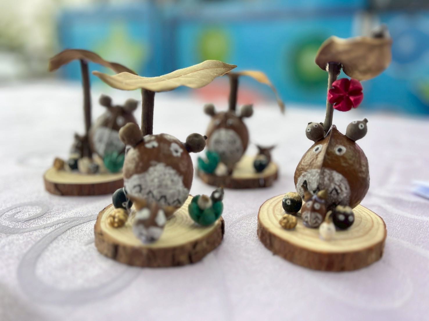竹秀苑在試營運期間邀東海大學十名跨系所學生擔任志工 推動四周的竹藝混齡共學 開幕典禮會場展出長輩的創意作品 收入化為公益善款 長自己作品被認可並能幫助他人 都很開心