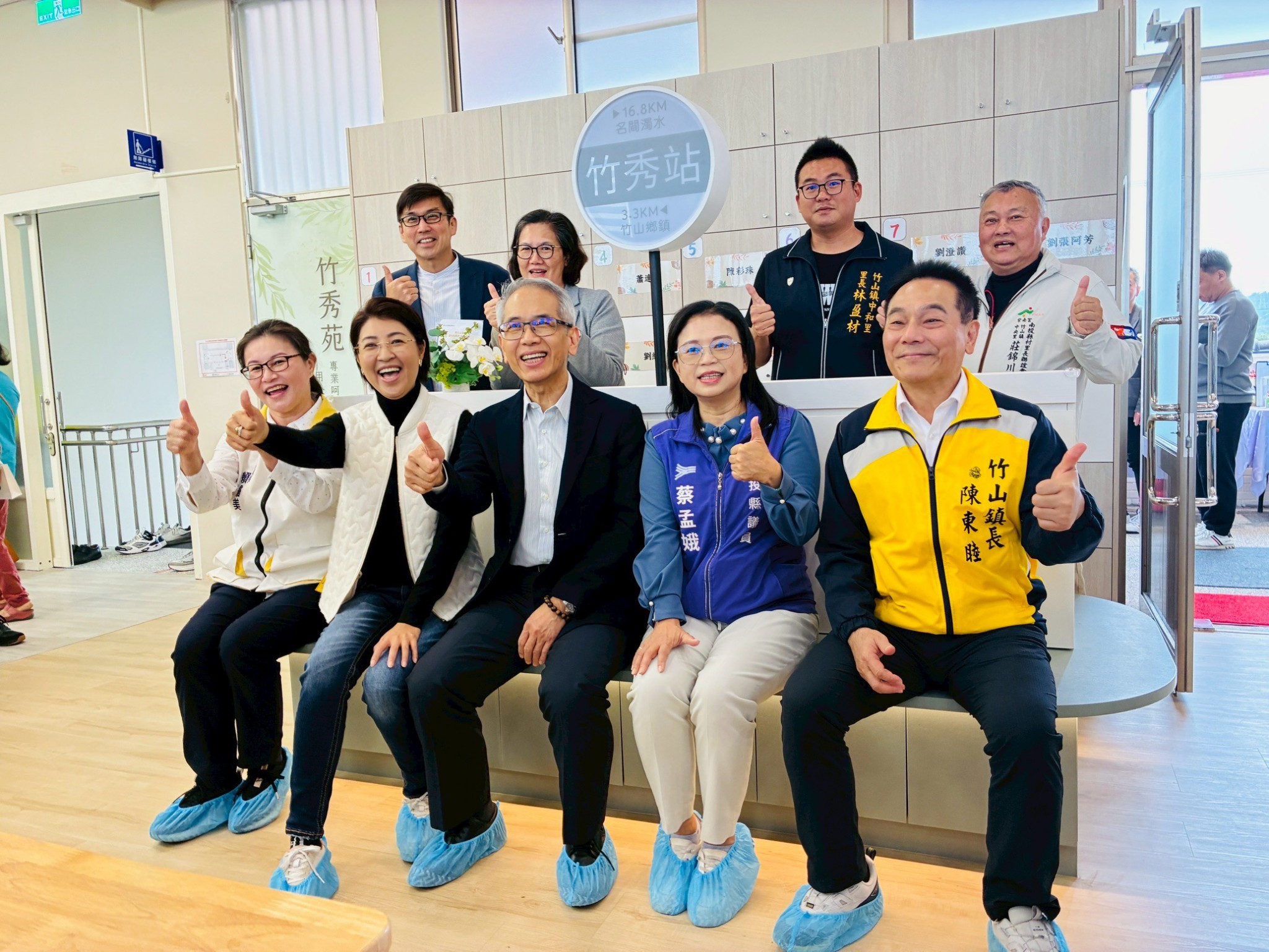 「竹秀苑甫開幕就有15長輩參加,占可收托數一半。」許縣長說,竹秀苑附設於中和里集會所二樓,一樓也是C級巷弄長照站,地點絕佳,落實醫療與長照一條龍,打造提供長輩照護如「家」一般的溫暖後盾。