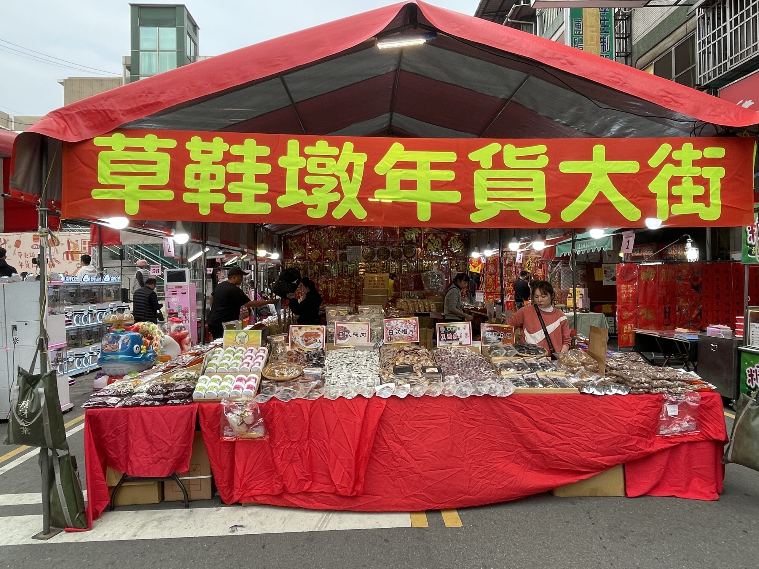 今年年貨大街活動從9日上午8時起至2月15日晚上10時30分止,一連7天在草屯鎮最熱鬧的公有零售市場一帶盛大舉行。