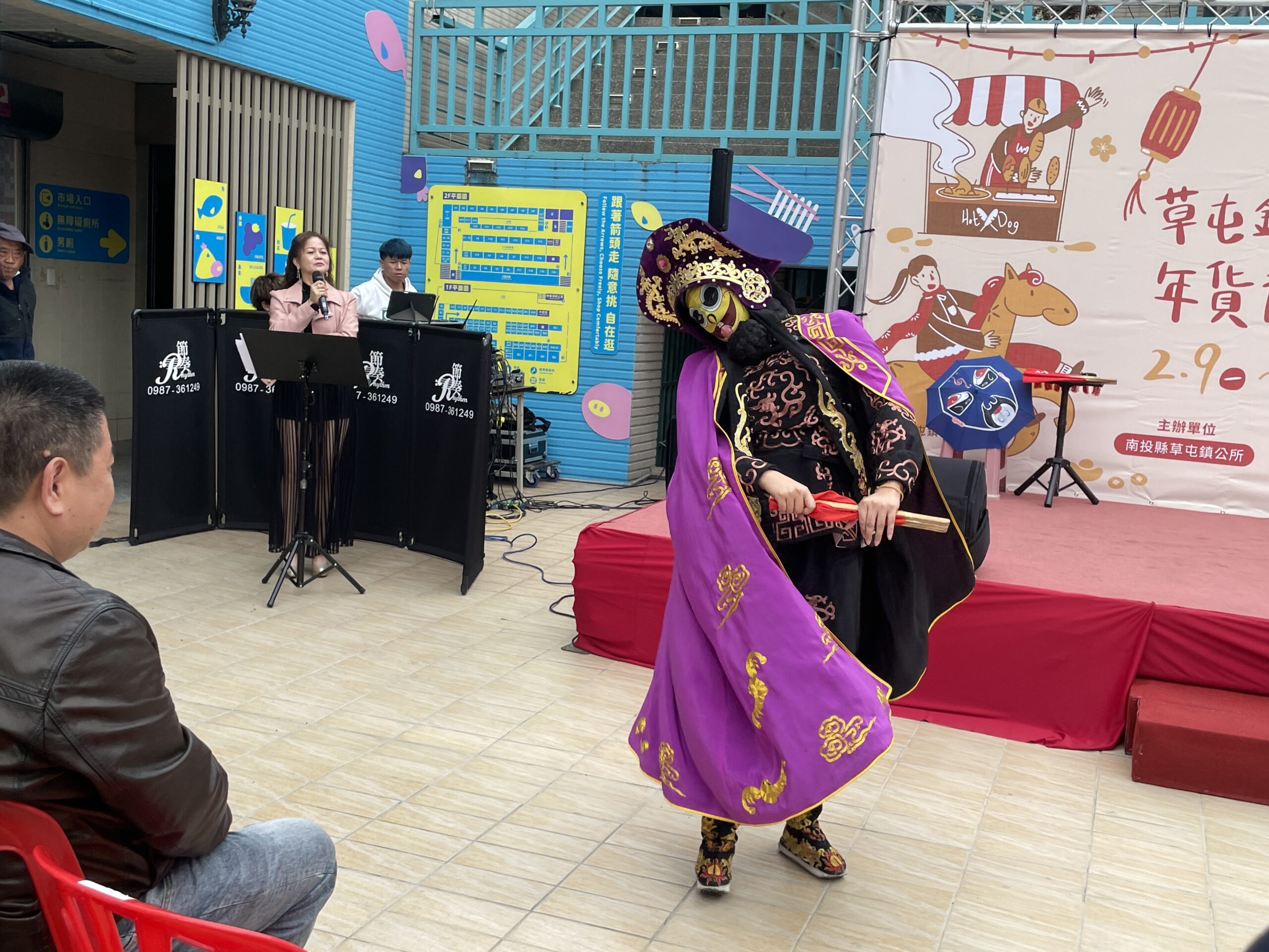 年貨大街於9日下午3時在草屯鎮公有零售市場前廣場開鑼,邀請社區媽媽表演熱舞,壓軸則是川劇變臉表演,炒熱現場氣氛,各個攤位秀出各自的特色年貨或食品,整條街食物飄香,讓人食指大動,傍晚就湧進一波接一波人潮;草屯鎮鎮長簡賜勝率公所團隊邀請各地遊客來逛大街購買年貨,一同迎接熱鬧喜慶的新春佳節。