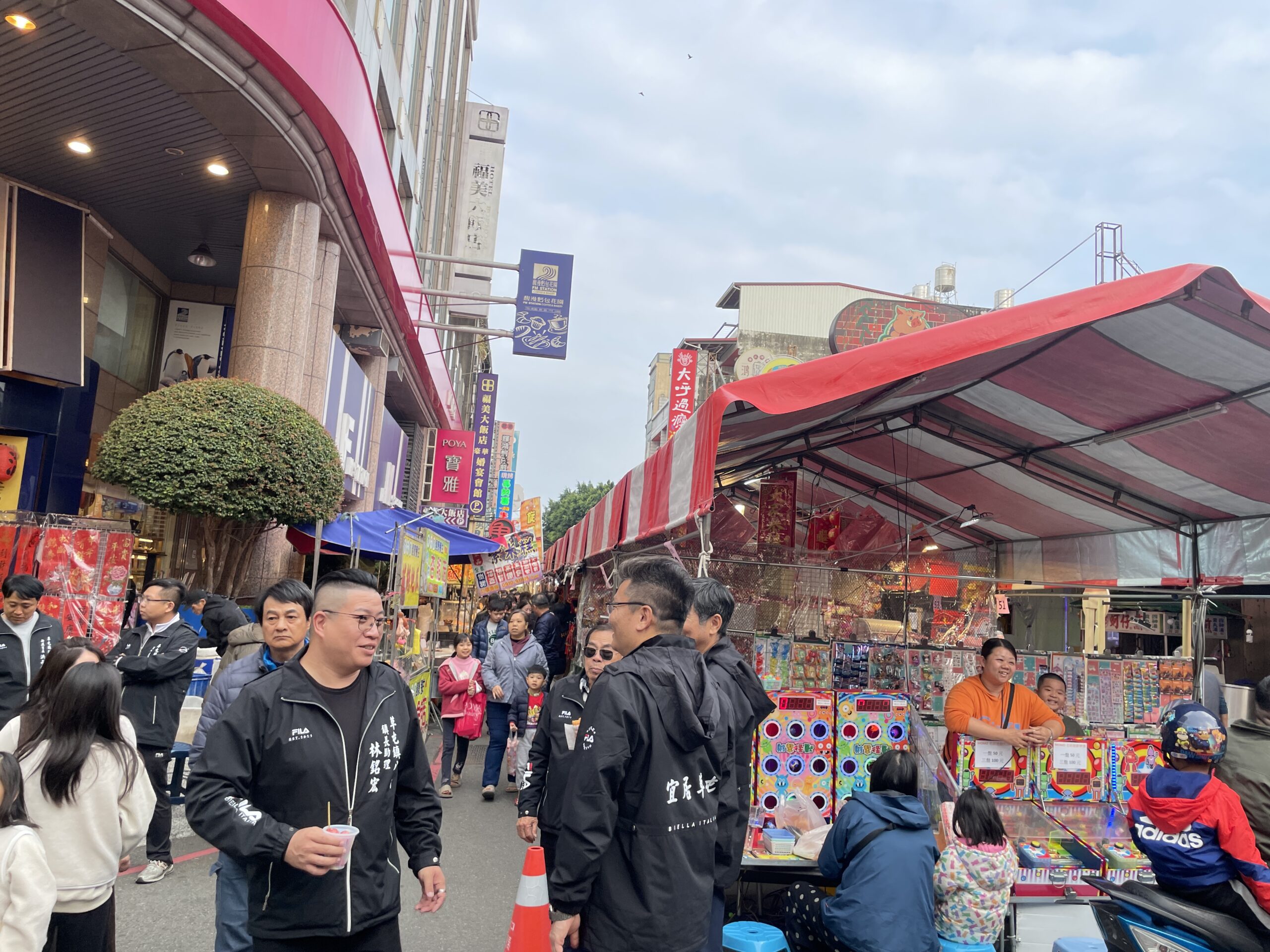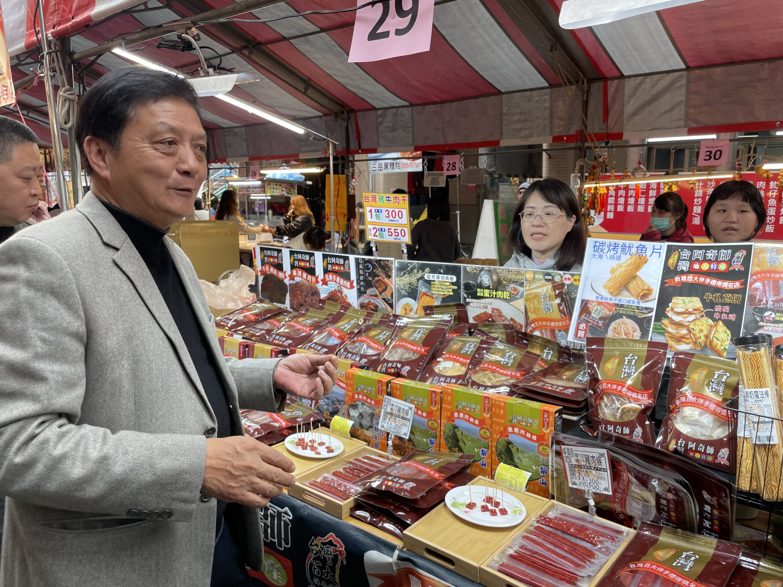 簡鎮長親自巡看年貨大街各推位銷售情形並向民眾賀年。