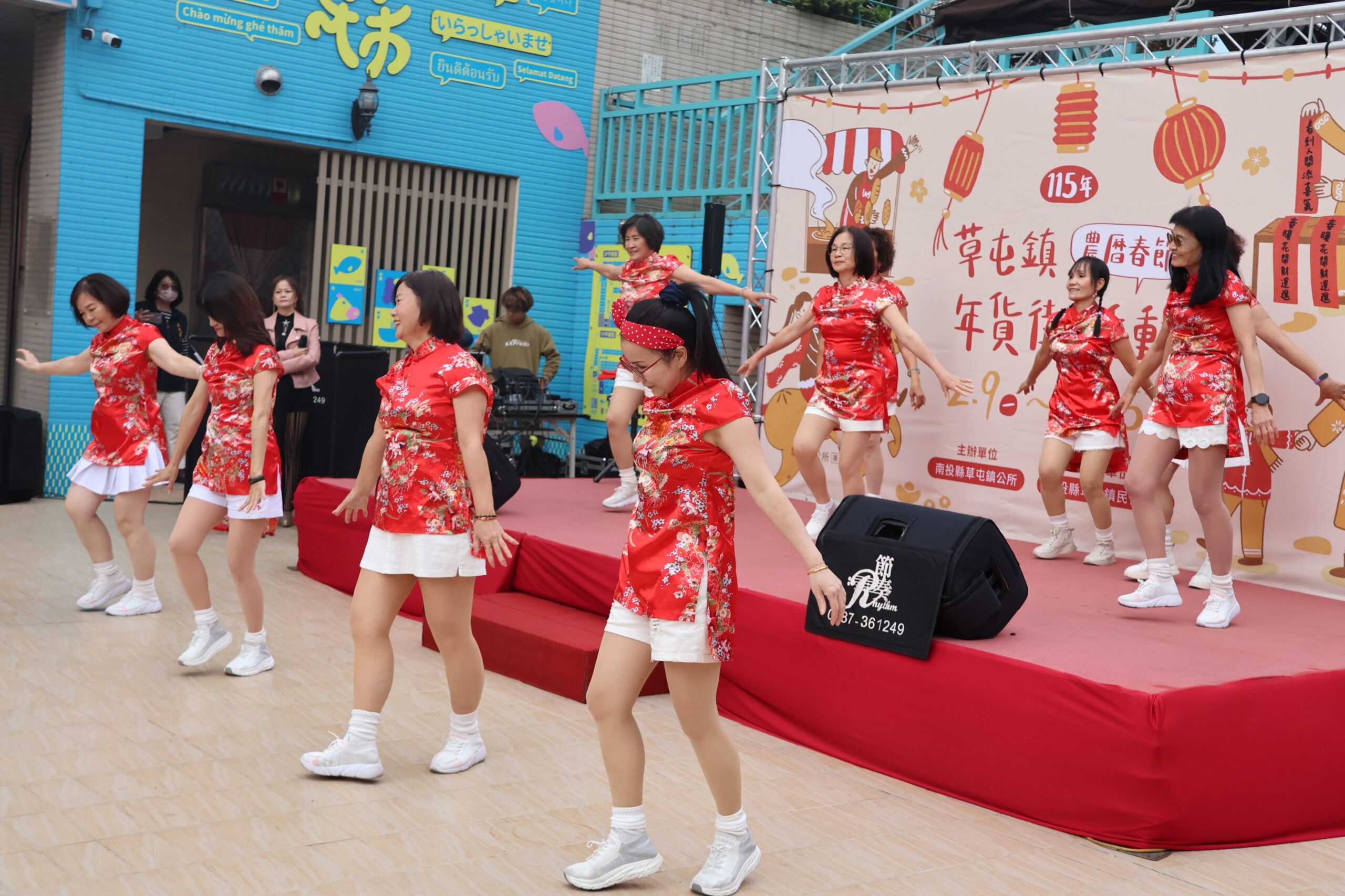 年貨大街開幕推出社區媽媽表演熱舞炒熱現場氣氛。