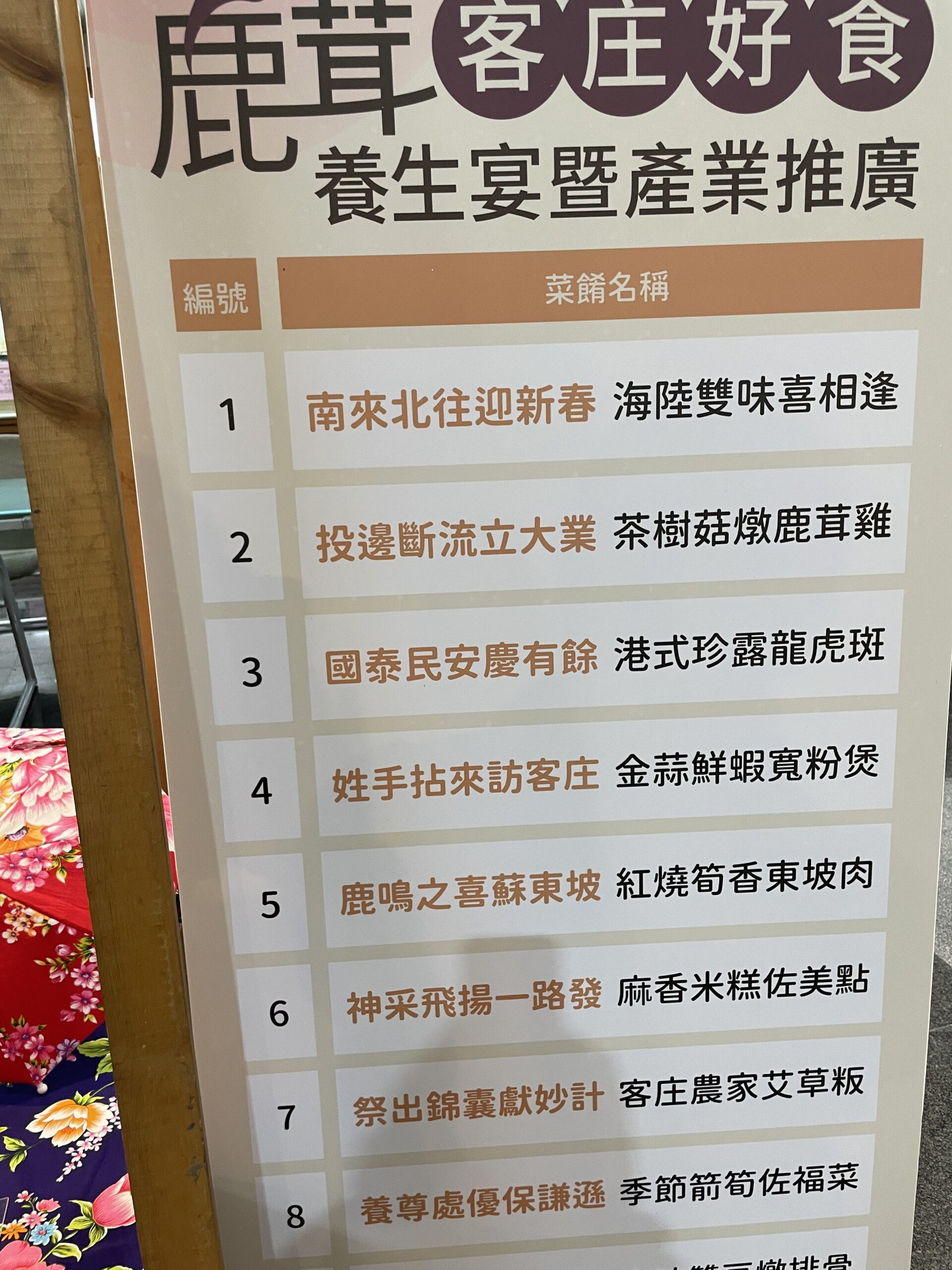 今年鹿茸養生宴的10道精緻料理 結合鹿茸、客家元素與在地農產 菜單名稱南來北往迎新春 茶樹菇燉鹿茸雞 客庄農家艾草粄等別具巧思