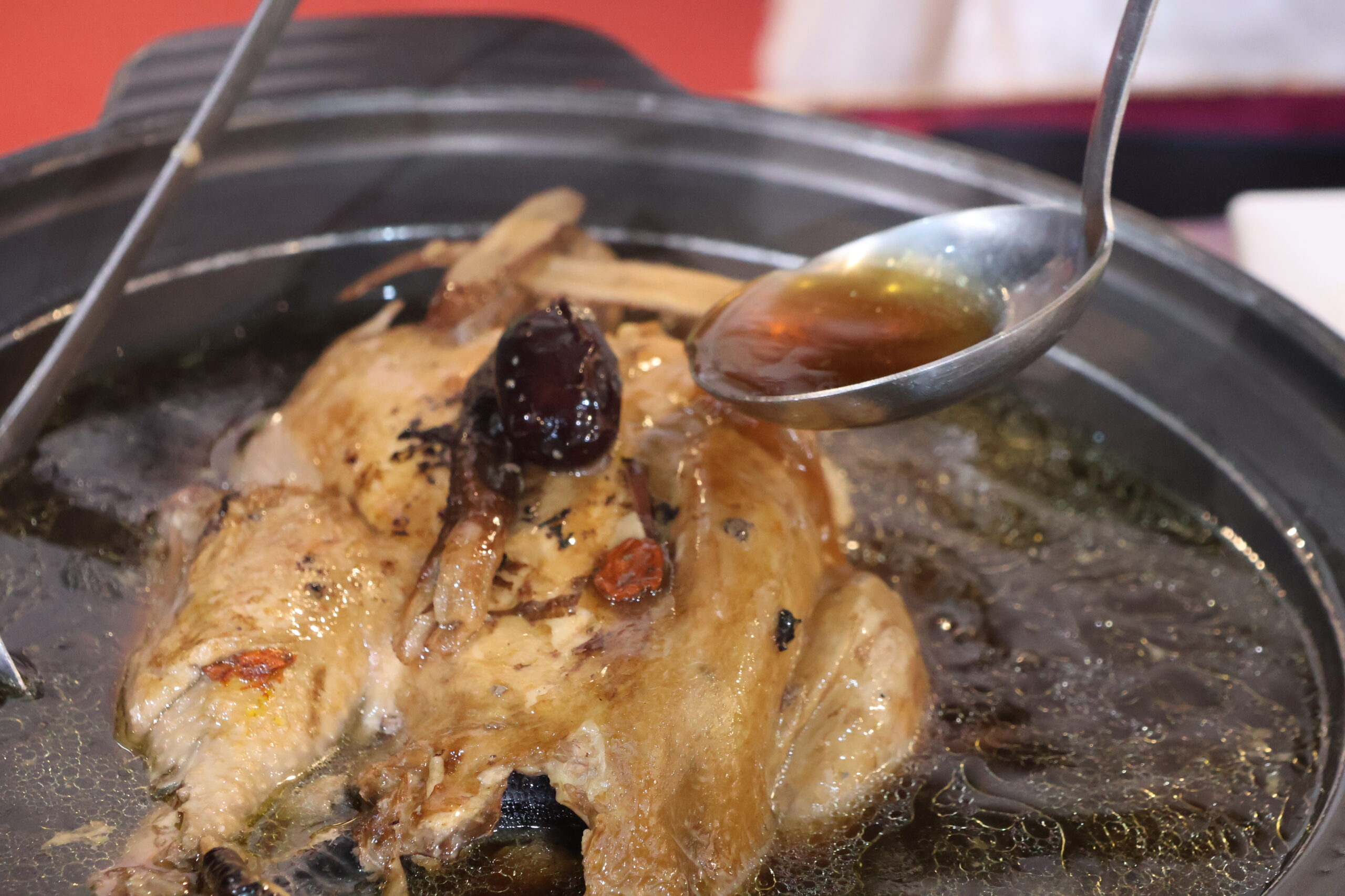 強調滋補養生的〈茶樹菇燉鹿茸雞〉。