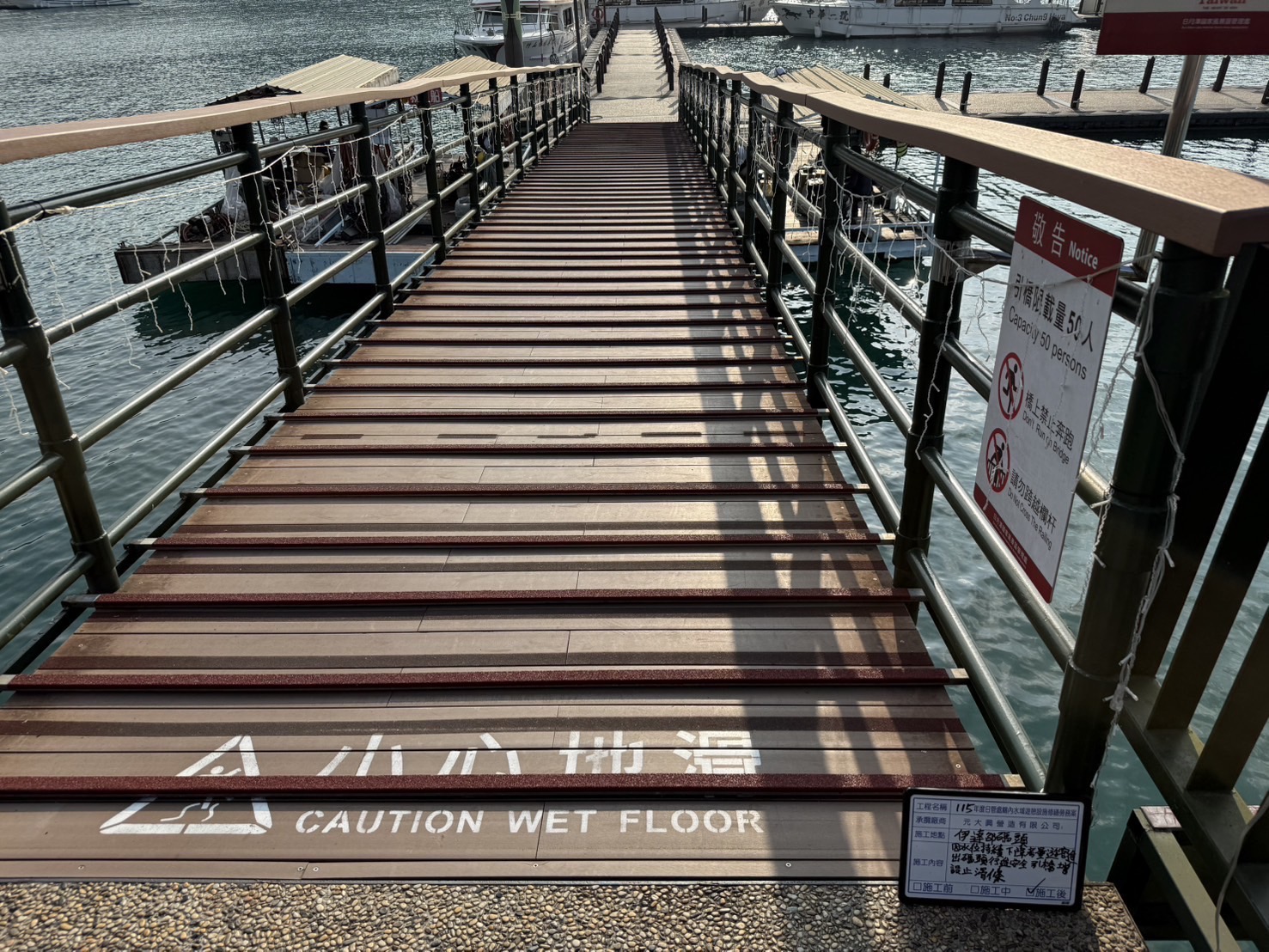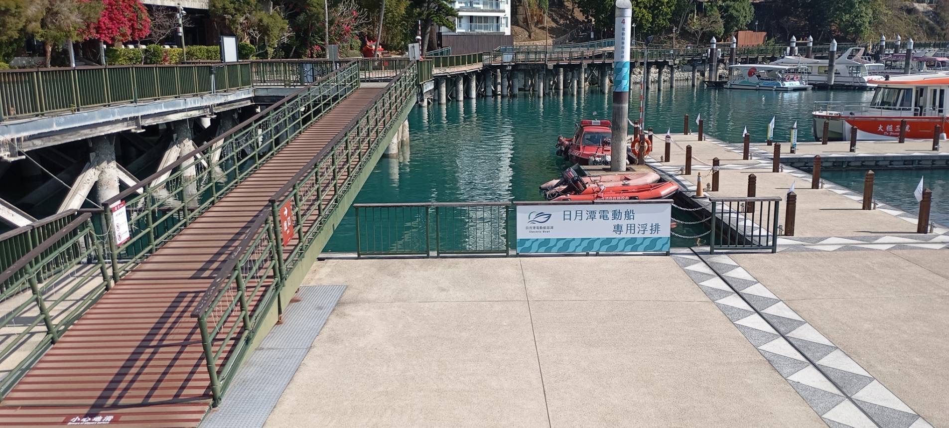 日月潭水位降逾3公尺 碼頭引橋較陡峭 啟動水社、玄光、伊達邵、朝霧四大公有碼頭第一階段應變措 引橋加裝防滑設施 協助民眾上下遊艇碼頭