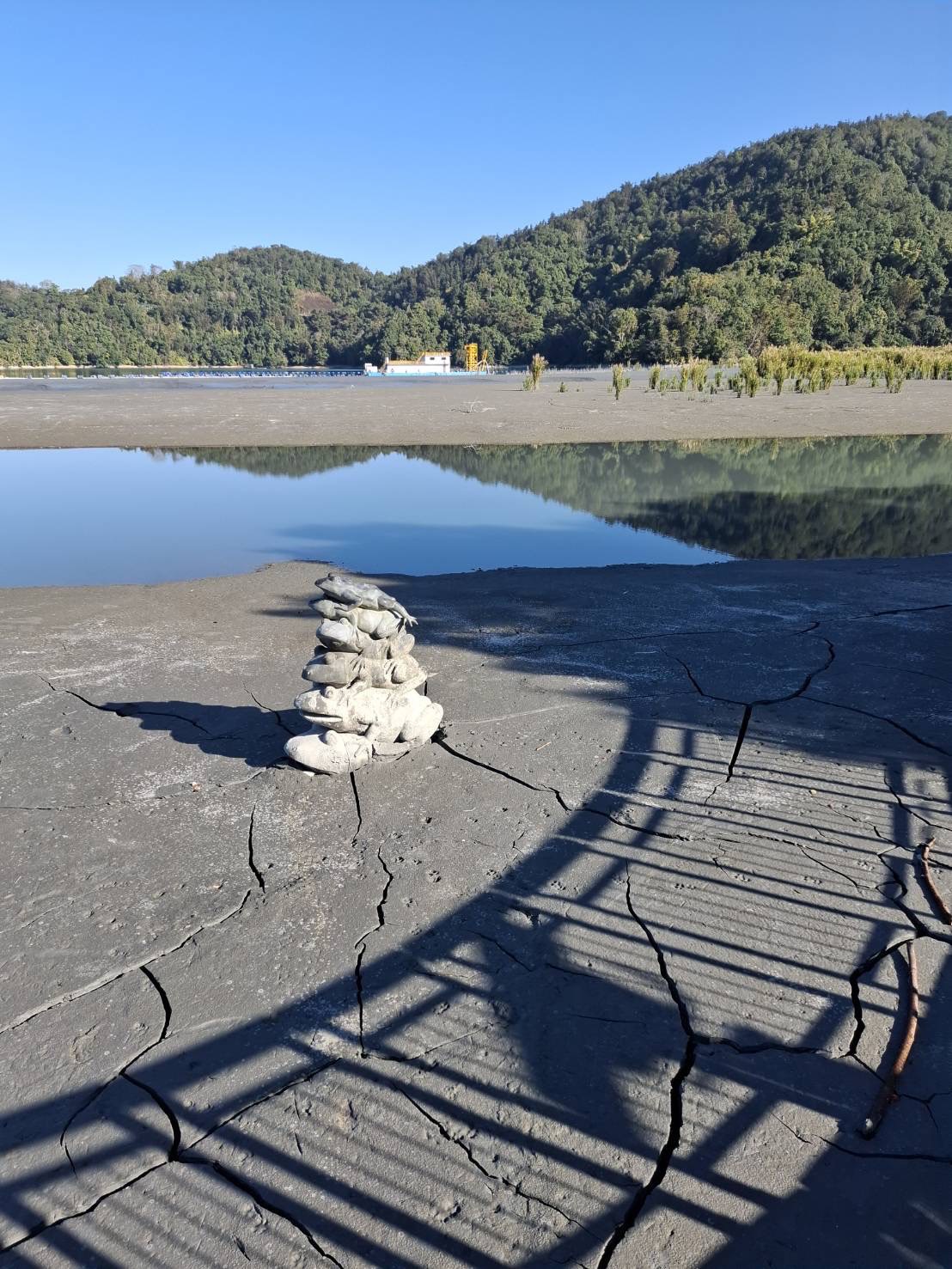 「近期降雨量偏低,且短期內無明顯降雨訊號,加上農業灌溉用水需求,導致水位持續下降。」日管處指出,潭區象徵水情指標的九蛙,目前已有6蛙都露出水面,另有3蛙陷在淤泥中,從即時影像與民眾提供照片可見周邊淤積都浮出水面變裂沙洲,顯示日月潭已進入枯水期,為了避免影響遊艇觀光,採取因應措施。
