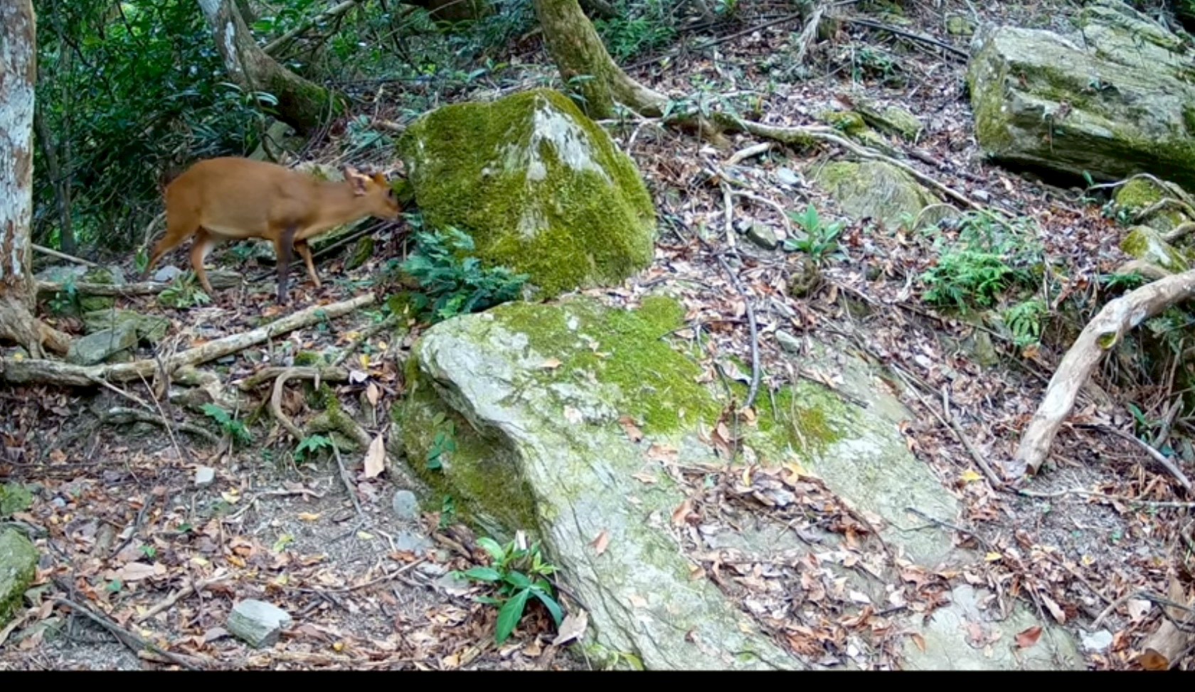 透過鏡頭瞧見臺灣山羌輕巧走過林下。圖/玉管處提供