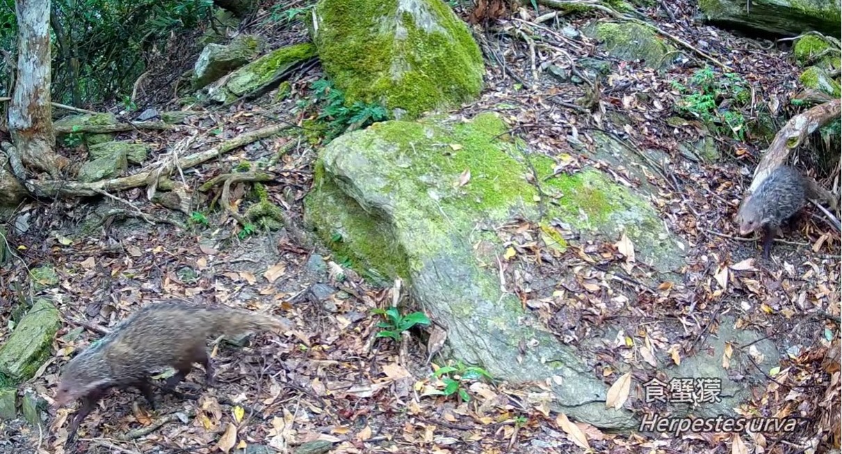 兩隻食蟹獴一起出現。圖/玉管處提供