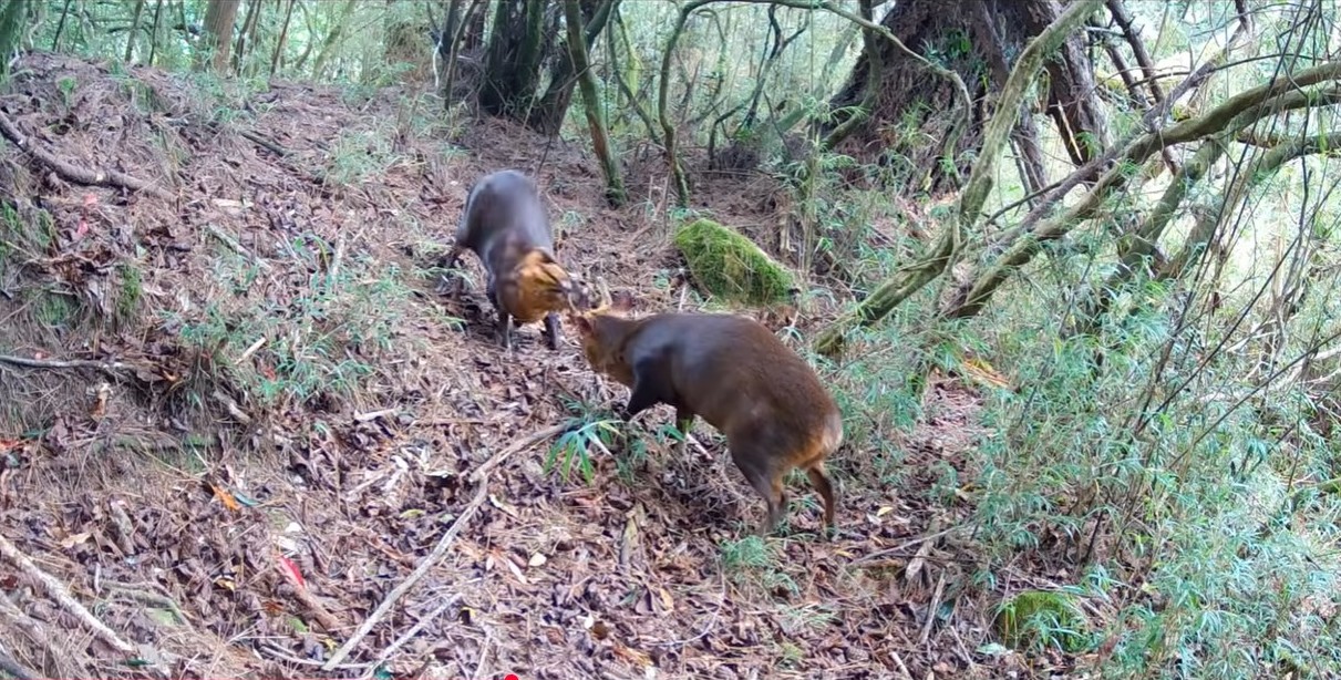 監測畫面記錄到兩隻台灣水鹿演起爭鬥地為戲碼。圖/玉管處提供