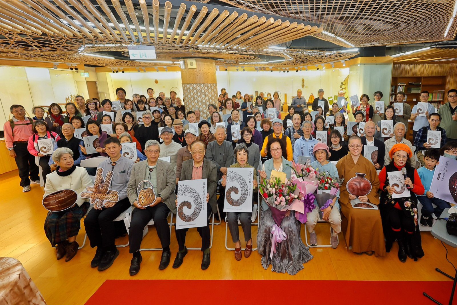 南投縣府文化局為「傳統工藝—竹編工藝」保存者林秀鳳出版《篾影筠編—林秀鳳的工藝實踐》專書發表會,工藝大師都來祝賀。圖/南投縣文化局提供