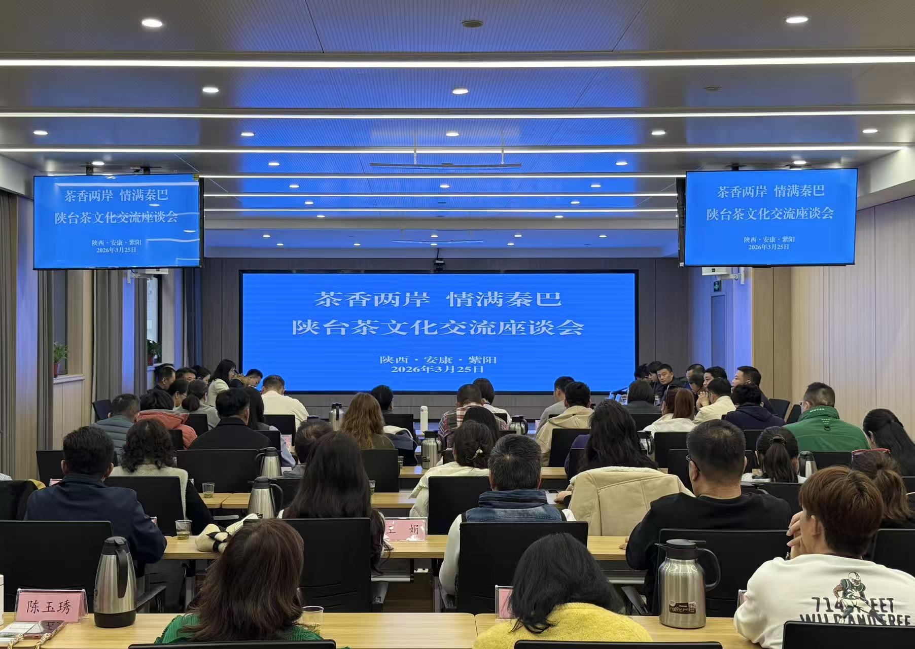 在紫陽縣召開的陝台茶⽂化交流座談會上,兩岸茶界⼈⼠圍繞茶產業提質升級、品牌打造、茶旅融合等內容深入交流,分享精細化制茶、市場化運營、⽂創開發等先進經驗,共商產業合作與⽂化互鑒路徑,為陝台茶產業協同發展搭建長效平臺。