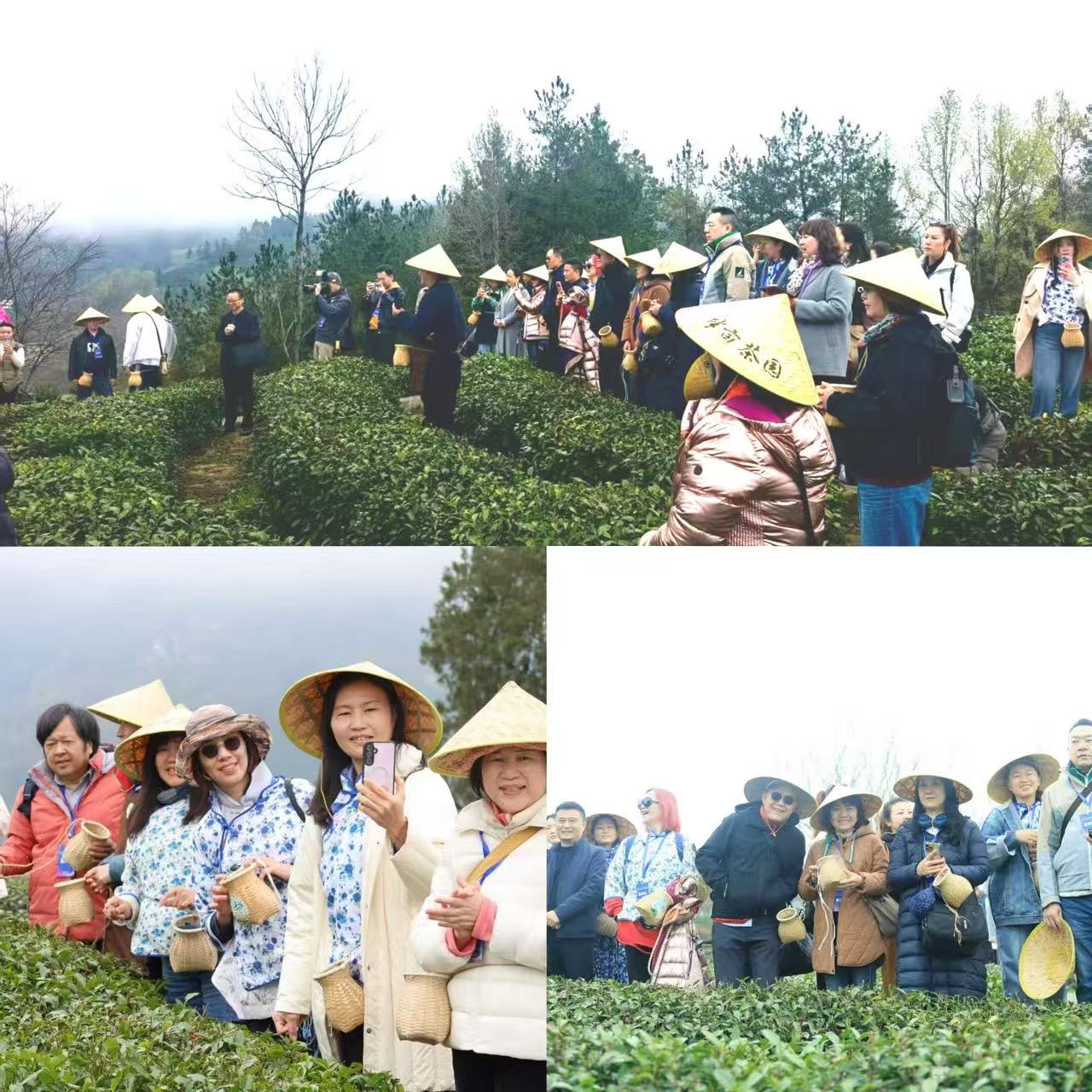 無我茶會走進紫陽茶園 置身春日茶田 在悠揚的紫陽山歌聲中採茶 漫步茶壟 感受富硒茶⽣長環境 品味秦巴富硒茶獨特韻味