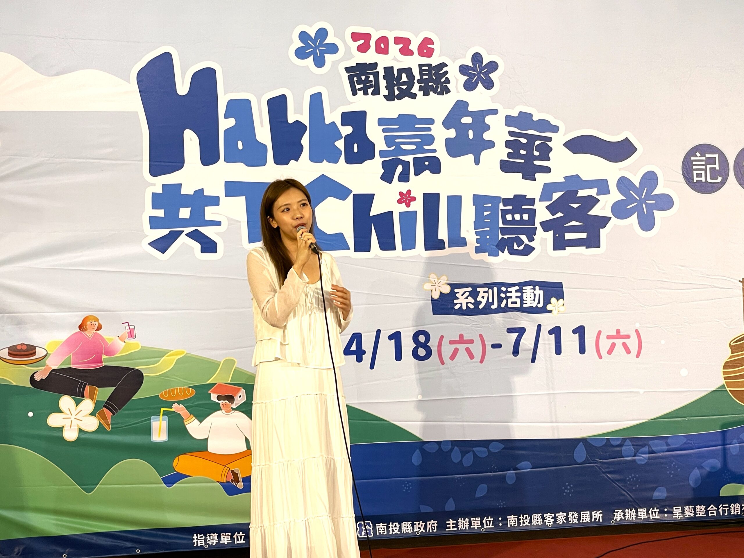 南投縣長許淑華10日上午宣布 「2026南投Hakka嘉年華~共下Chill聽客」系列活動將於4月18日至7月11日登場,記者會邀客語女歌手柔米演唱客家歌揭開序幕。