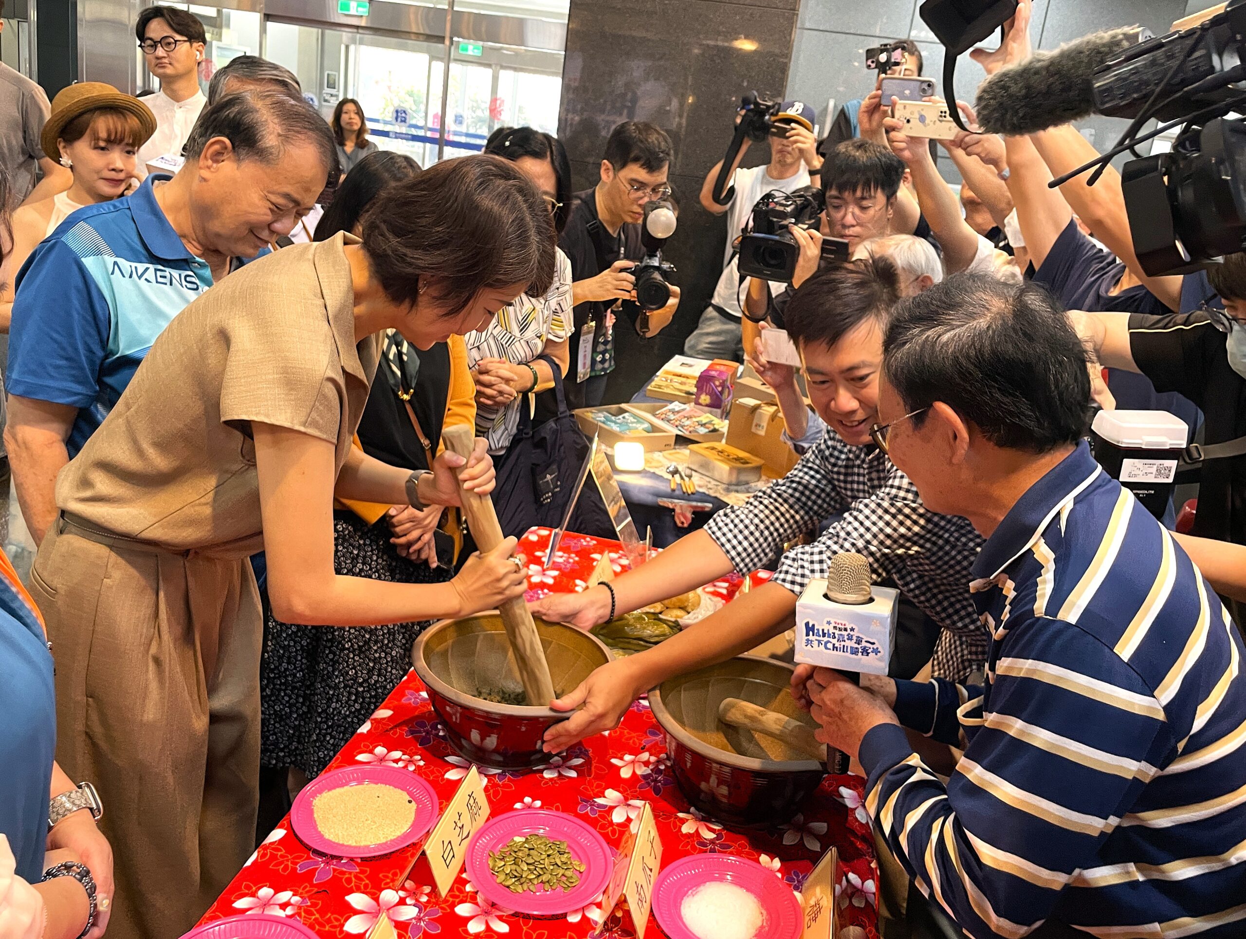 南投Hakka嘉年華與國姓等鄉合辦「客家桐花祭」活動,這是縣長體驗最道地的客家擂茶。