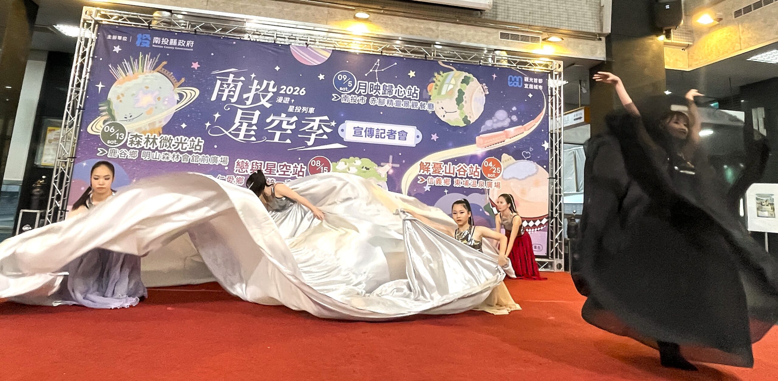 主打友善星空生態、觀星主題式旅遊的「南投星空季」系列活動即將開跑,南投縣長許淑華14日上午在1樓大廳舉辦活動記者會宣布,今年以「星投列車」為概念,將分別在4月25日東埔、6月13日溪頭、8月15日清境、9月5日南投市赤腳精靈景觀餐廳等4個地區推出四場主題日活動,廣邀全國民眾參加,體驗不同角度觀賞星空的奧妙。