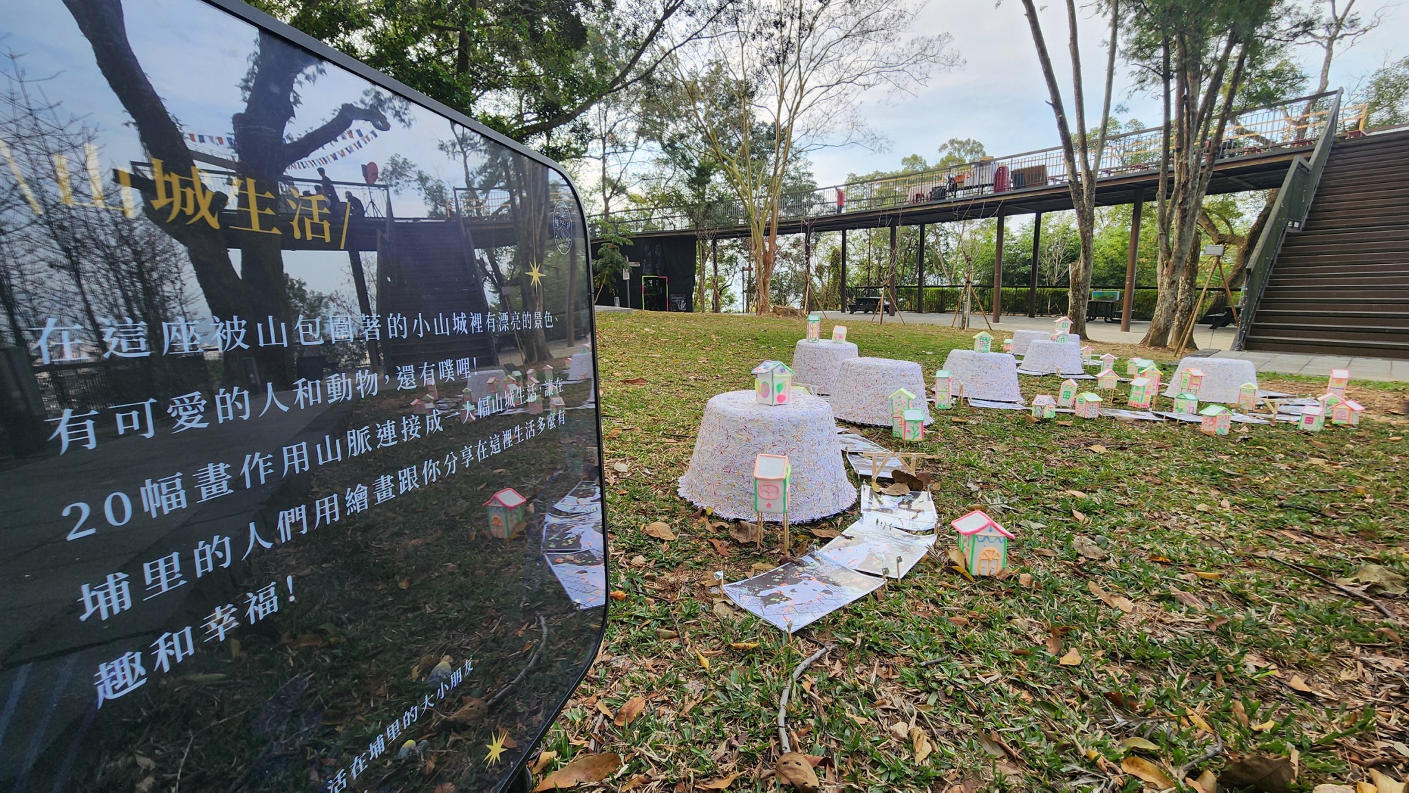 現場也設置敲鐘區〈敲亮埔里〉,讓民眾在台灣的中心許下心願,輕敲祝福之鐘,鐘聲在森林裡迴盪,也把祝福傳遞給小鎮。